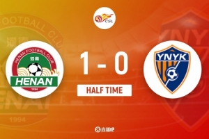 伤停补时3分钟。上半场比赛结束,河南1-0云南玉昆。