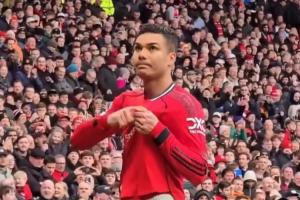 名记罗马诺晒出视频,卡塞米罗在进球后频频指向队徽。在赛后曼联球迷们高唱卡塞米罗再留一年。