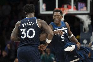 同时,森林狼距离第四的掘金仅差0.5个胜场,距离第三的火箭也只剩1个胜场。