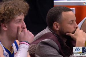 比赛加时赛,勇士球员穆迪在一次空篮快攻中无对抗受伤,膝盖遭遇毁灭性伤病。