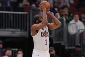 加盟骑士至今,哈登出战18场,场均21.2分5.2篮板7.8助攻3.2记三分球,三分命中率46%,球队这18场14胜4负。