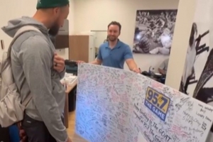 湾区电台95.7 The Game为库里送上了“超级生日贺卡”,上面密密麻麻全是球迷的祝福。