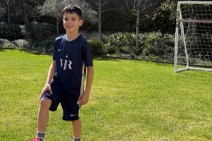巴斯克斯社媒晒出孩子身穿维尼修斯球衣的照片,配文:“非常感谢维尼修斯,我们爱你。”