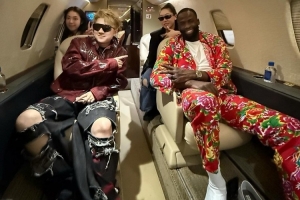体育资讯3月4日讯 今日中国说唱歌手王以太更新社媒晒出自己与勇士球星追梦合影,追梦一身东北大花十分吸睛。