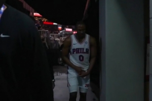 GIF-马克西拼抢与队友博纳撞到一起,手指受伤回更衣室